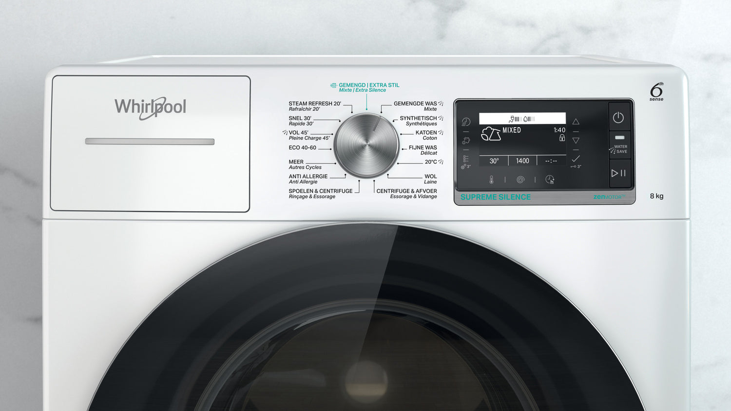 Kenmerken van deze Whirlpool vrijstaande wasmachine: kleur wit. Een snelle en efficiënte draaisnelheid van 1400 omwentelingen per minuut. Exclusieve 6th SENSE technologie past de instellingen dynamisch aan elke specifieke lading aan, dus garandeert perfecte verzorging van alle stoffen. Direct Drive Silence technologie voor een stille werking, zodat u van extra rust en stilte kunt genieten.