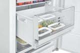 Met de soft-close deursluiting sluit de deur automatisch vanuit een bepaalde openingshoek. De deur sluit uit zichzelf zachtjes, waardoor kleine kinderhandjes veilig zijn en de flessen in de deurvakken niet rinkelen. Zo sluit de koelkast deur net zo comfortabel als de keukenlades. |